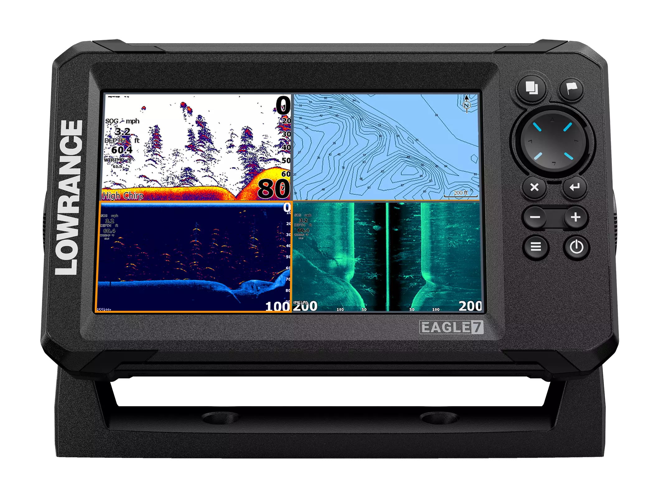 Lowrance Eagle - is a multifunction device designed for fishing and boating, with smooth operation thanks to its powerful performance, versatile sonar technologies, and a precise and bright IPS display. The EAGLE series includes an automatically adjusting sonar, SideScan and DownScan Imaging technologies, as well as the FishReveal function, which makes it easier to detect fish by combining the advantages of Lowrance CHIRP sonar and DownScan Imaging on one screen. EAGLE uses completely redesigned SlitShot HD or Tripleshot HD transducers, which produce an extremely detailed image of underwater views on the screen. The EAGLE series also features real-time Genesis Live mapping, allowing you to map your best fishing spots and unknown water areas in real-time. You can scan and save your own map directly onto a C-MAP chart card or an empty memory card.
