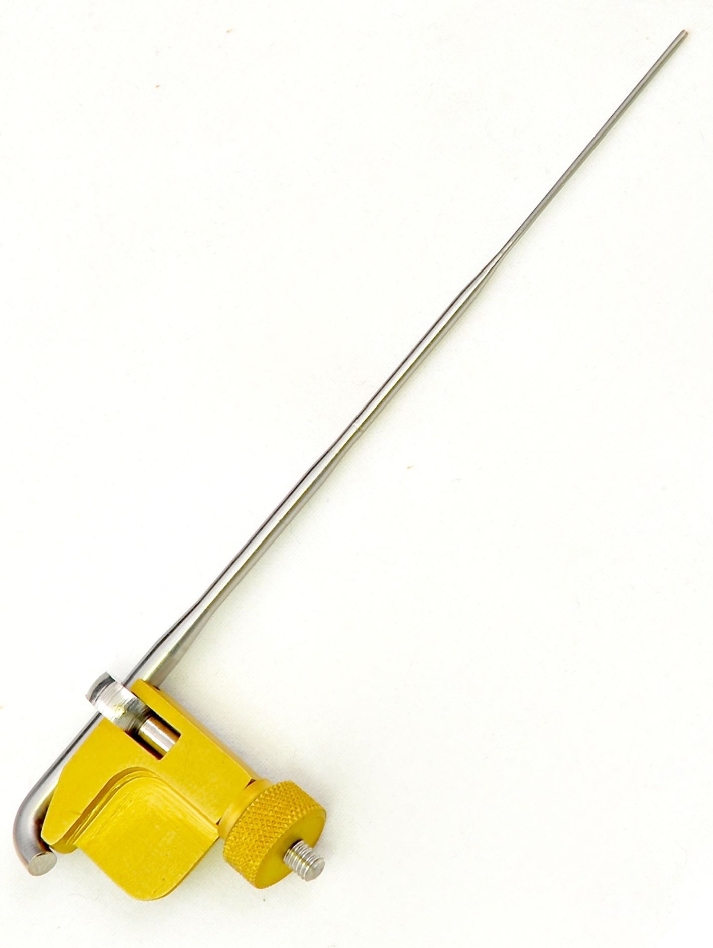 FITS Tube Device & Needle is a mounting platform designed for tube fly tying, which includes the original FITS tube fly needle. The needle is tapered so that it thickens from the tip to the base, allowing the use of the most common plastic and brass tubes.