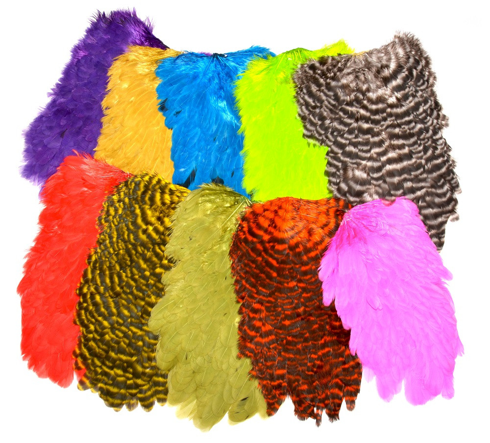 American Hen Saddle on FutureFly's high-quality hen saddle, which offers larger hackles especially for large tube flies. The hackles in the American series are versatile, and even the smallest of them are suitable for small tube flies or #6 size hook flies. The hackles are easy to wrap, and their soft barbs settle beautifully.
