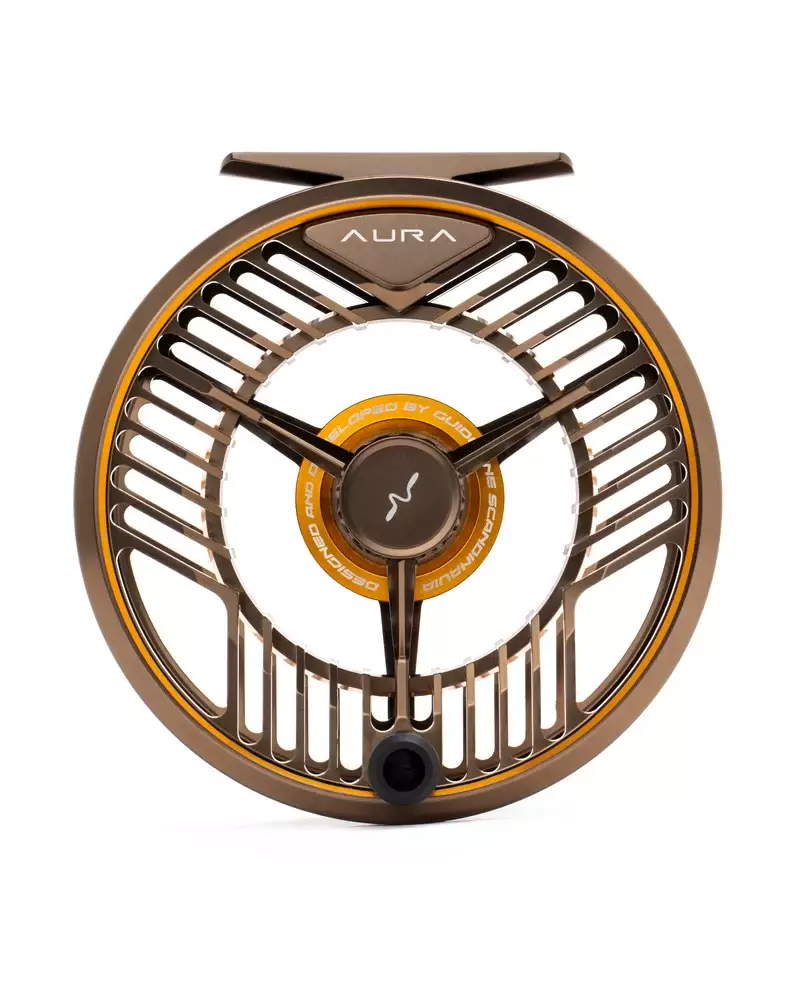 Guideline AURA Reel Bronze - en bredspolad flugrulle designad för krävande användning, där form och funktionalitet tjänar ett tydligt syfte: inget överflöd, inga kompromisser. Vid designen av AURA-serien har fokus legat på det väsentliga, från viktfördelning till ytbehandling, för att säkerställa att kastarens känsla och kontroll förblir konsekventa. Lätt och robust konstruktion kombineras med kontrollerad minimalism, vilket framhäver en balanserad helhet. Rullen täcker behoven från smidig enhandsfiske till längre tvåhands Spey-applikationer.