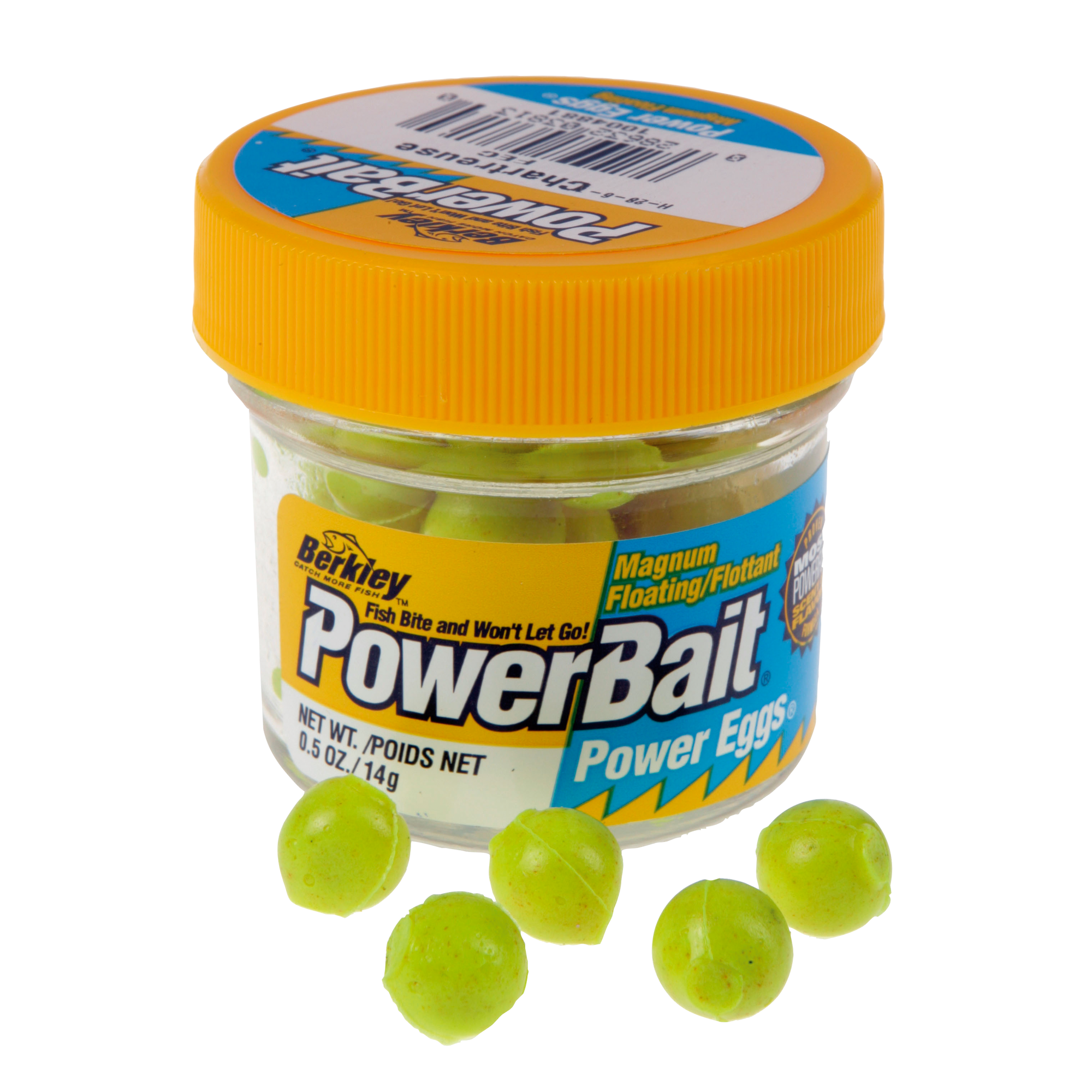 Powerbait Power Eggs Float Magnum is a bait ball manufactured by Berkley PowerBait, designed to enhance the fishing experience. For over 30 years, Berkley has developed a unique combination of scent and taste that makes the bait irresistible to fish. With PowerBait, fish hold onto the bait up to 18 times longer, giving the angler more time to feel the bites, set the hooks, and catch the fish.