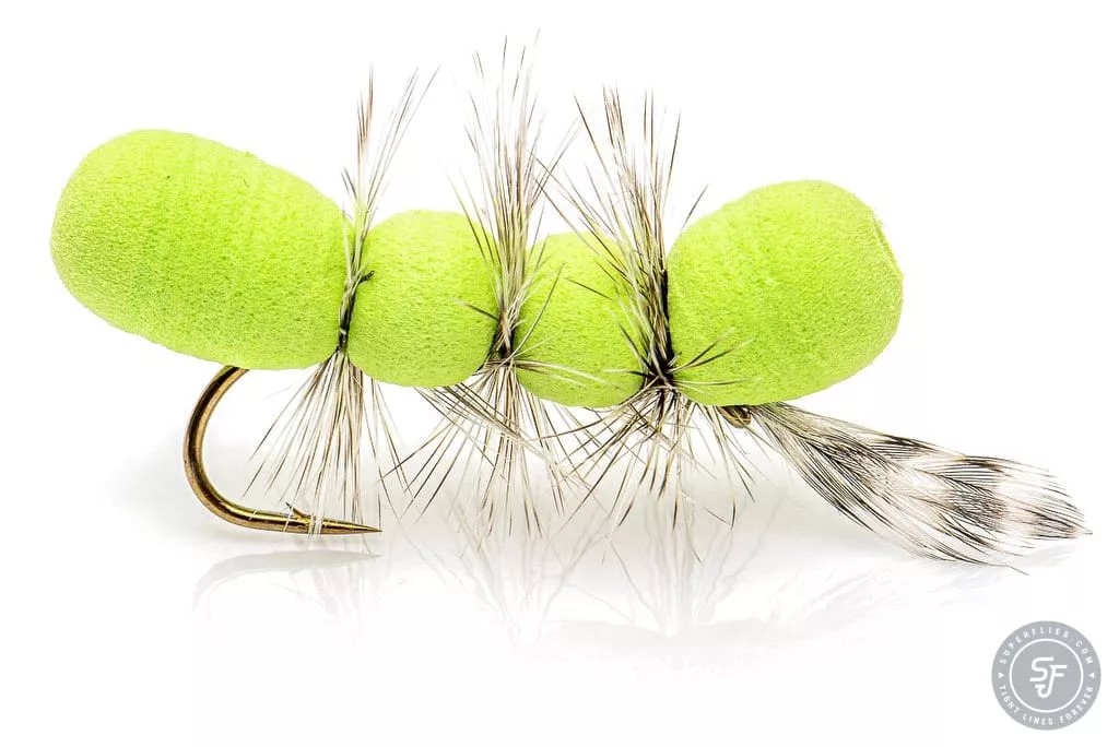 Pupu Tupuna Chartreuse salmon dry fly - Features: