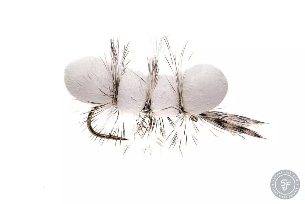Pupu Tupuna White salmon dry fly has quickly become a significant fly innovation in recent years. Its foam body makes it a particularly reliable choice when you want to ensure the fly's buoyancy even in challenging conditions. This fly is an excellent choice when you want to ensure a catch in the dry fly fishing of northern rivers.