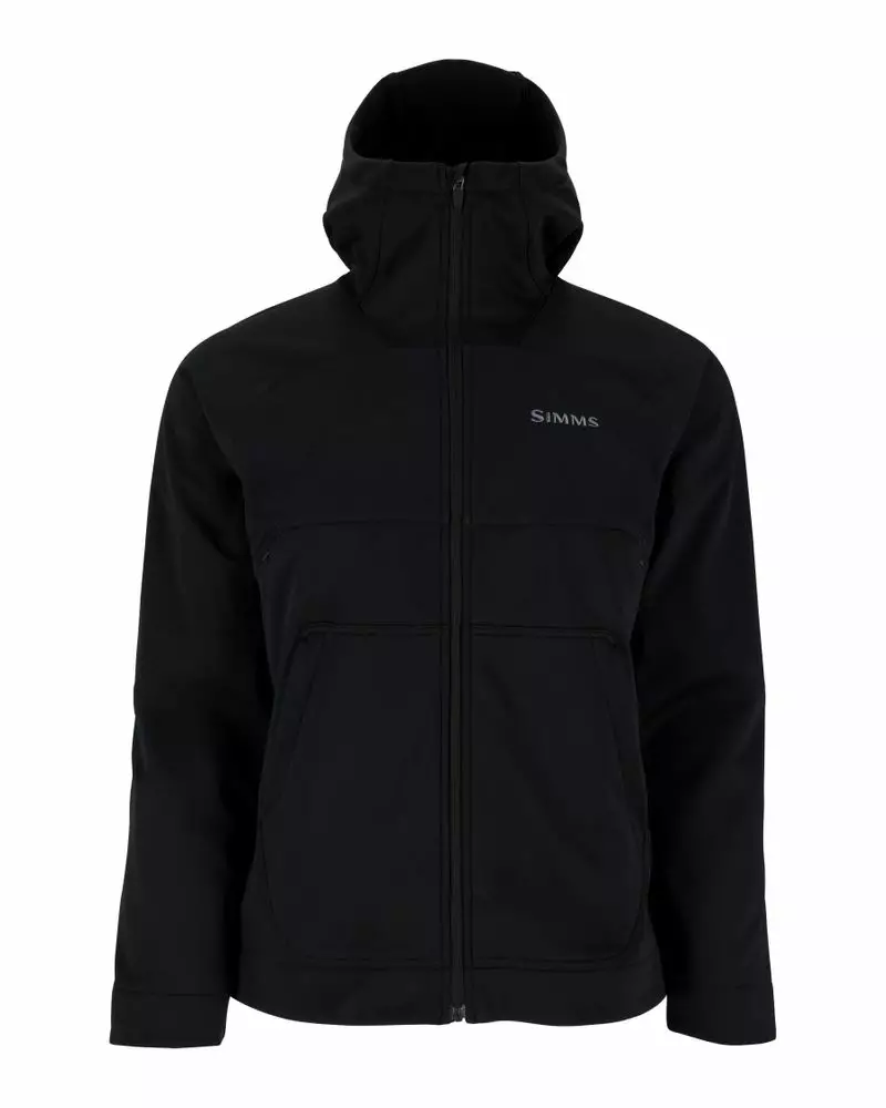 Simms Saginawa Hoody Black This hoodie offers excellent protection in windy and unstable weather conditions, combining windproof, water-resistant, and abrasion-resistant properties with comfort. The three-point adjustable hood keeps the warmth where it is needed.