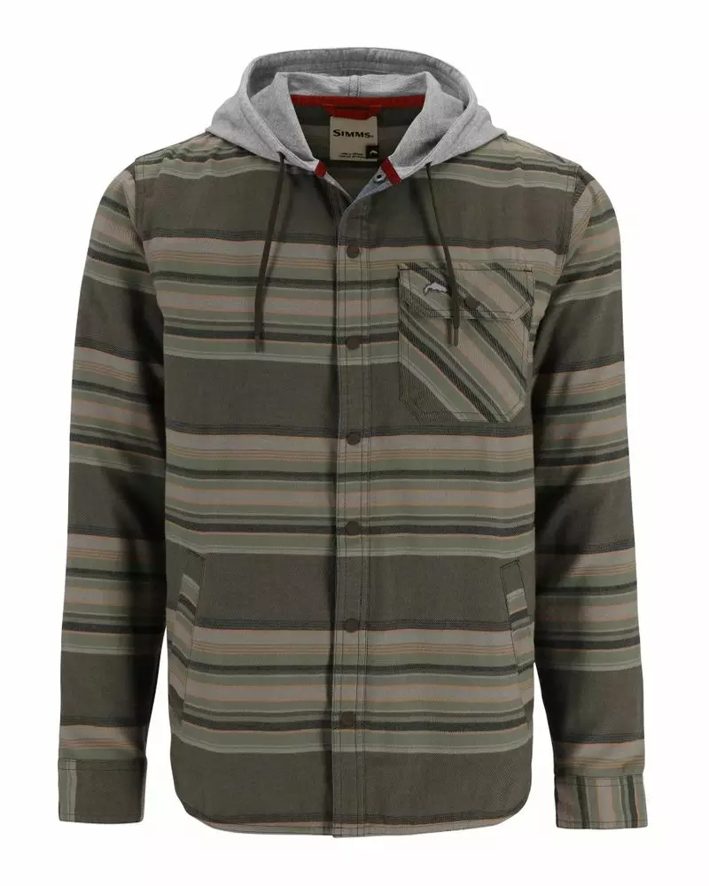 Simms Santee Flannel Hoody Hickory/Dolomite Blanket Stripe - Features: