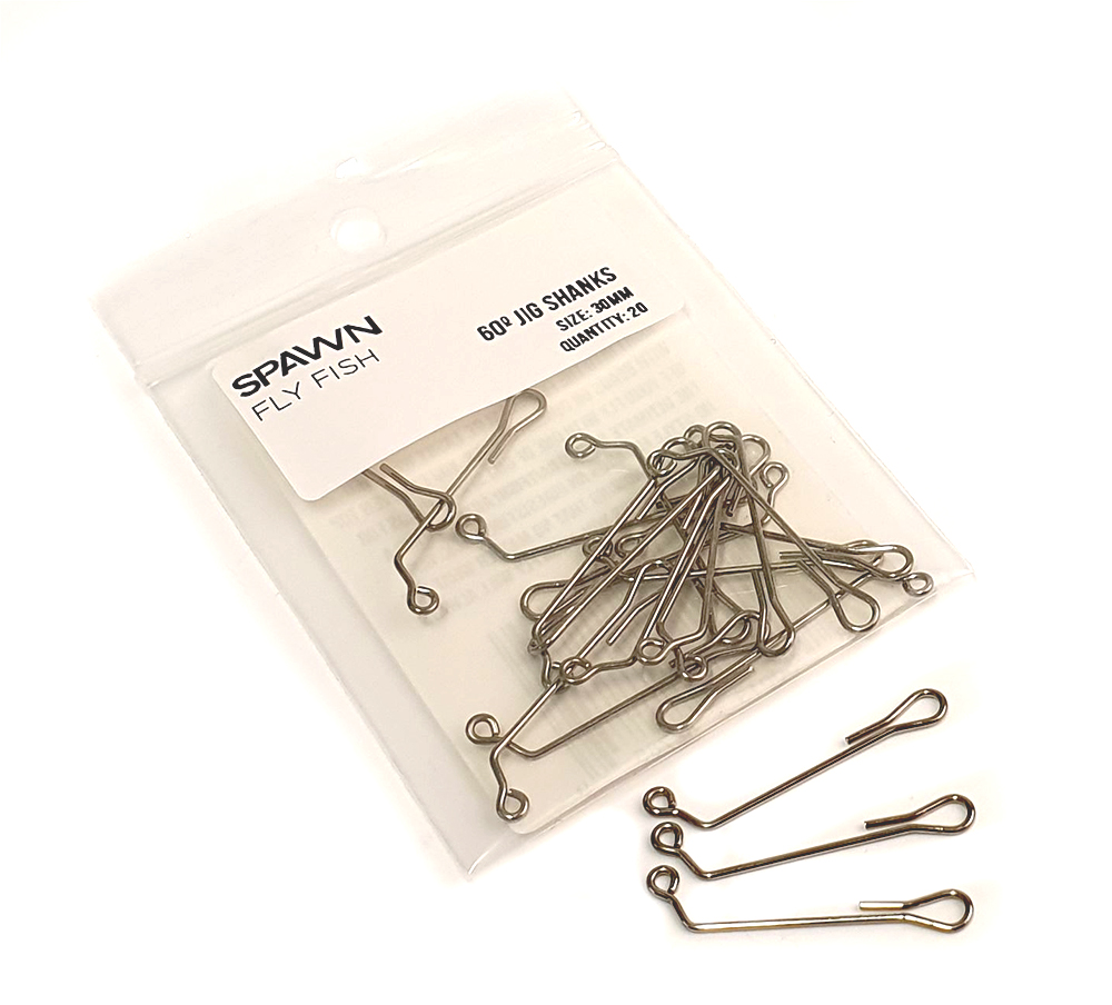 Spawn 60 Degree Jig Shanks are frame wires bent at a 60-degree angle, which can be used with various slotted bead heads and weight eyes. Jig Shanks can be combined with other frame wires when tying longer flies or threaded directly onto the hook of your choice.