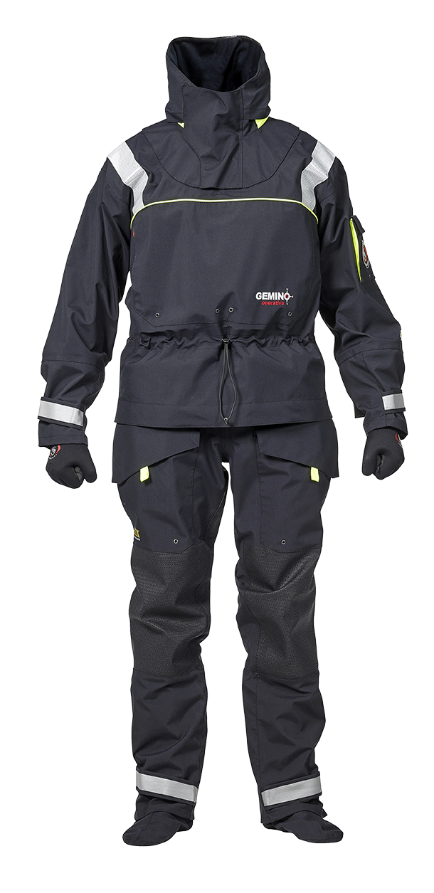 Ursuit Gemino Operative Black is a two-piece dry suit designed to keep its wearer dry in all conditions. The suit is made from 4-Tex fabric, which consists of four layers. The suit features integrated 4-Tex socks that enhance comfort and protection.