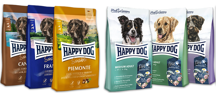 Happy Dog is a high-quality dog food brand produced by a German family-owned company that has been operating since the 1700s. Since 2015, Happy Dog has been the best-selling dog food in Germany.