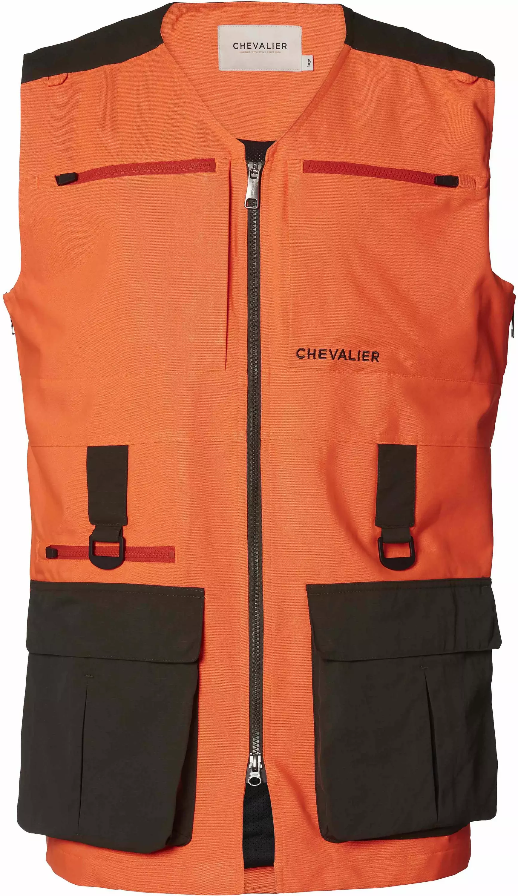 The Chase Doghandler Vest has been specially developed by and for dog handlers. Made of a waterproof polyester fabric, the vest is reinforced with Cordura® Ripstop across the shoulders. Plenty of room for everything a dog handler needs. In all this vest has eight pockets, including bellow pockets at the front with a GPS pocket on the right-hand one, double radio pockets, two vertical chest pockets, and a generous back pocket. The dog handler vest is size adjustable with a zipper either side. This makes it expandable if it’s cold and you want to wear an extra thick sweater or jacket underneath. The vest has two D-rings in loops at the front.