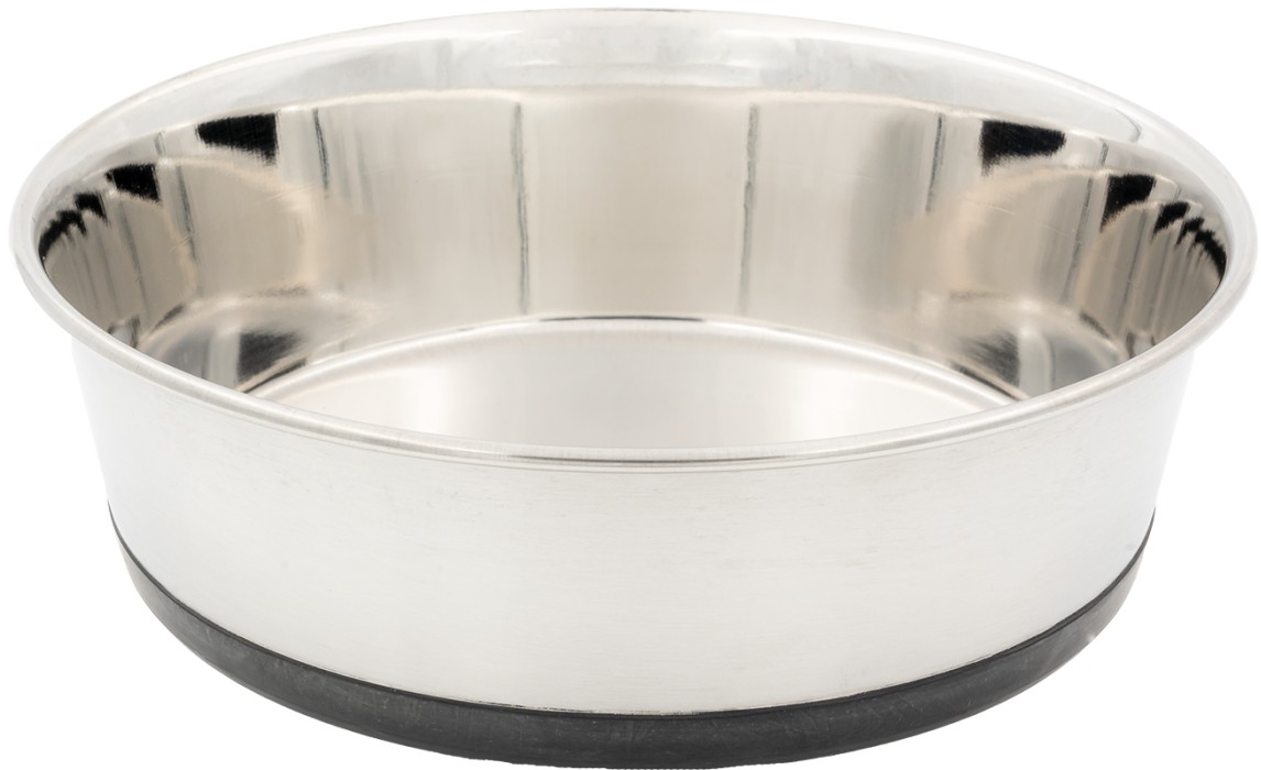 Hundra Steel Bowl with Non-Slip Base is a durable and strong dog food bowl made of stainless steel. The bowl's base has silicone non-slip pads that keep the bowl firmly in place and reduce the clattering noise from the steel bowl.