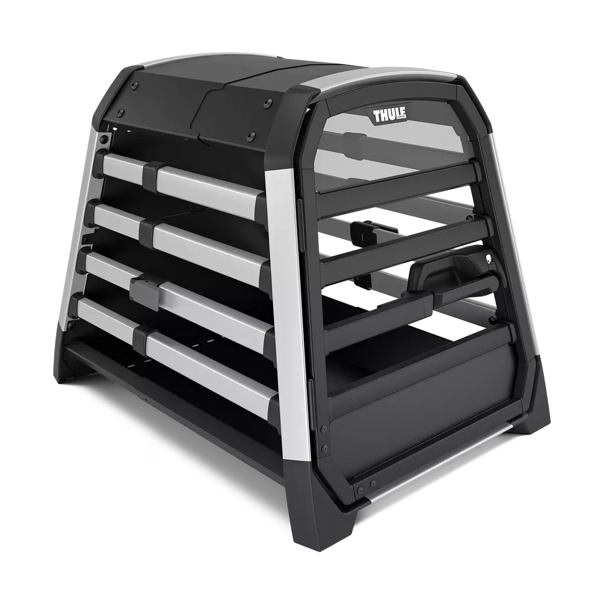 Thule Allax S is a high-quality dog transport crate designed with safety and comfort in mind. It is crash-tested and TÜV SÜD certified, featuring an innovative crash-absorbing zone that protects both the dog and passengers.