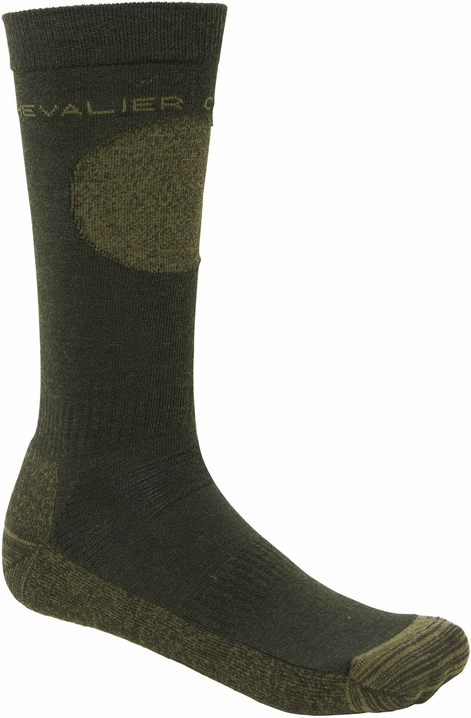 Chevalier Boot Wool Socks Dark Green are high-quality boot socks designed especially for hunting and outdoor activities. The socks are made of 78% merino wool, 18% polyamide, 2% Lycra fiber, and 2% acrylic. Merino wool is a natural material known for its excellent moisture-wicking and heat-retention properties even when wet.