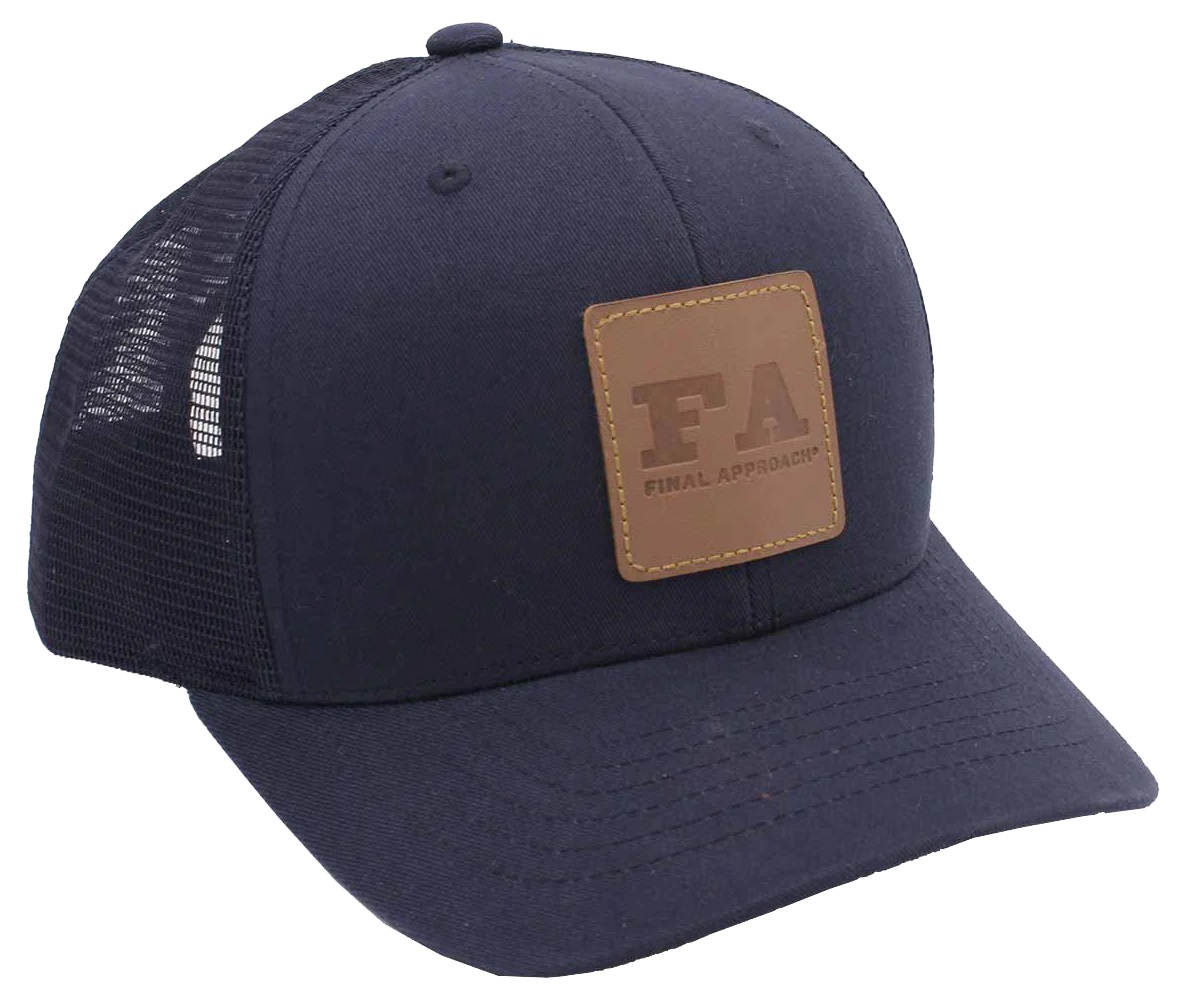 Final Approach Mesh Back Hat is a cap featuring a breathable mesh back and an adjustable strap to ensure a comfortable fit. The cap is available in various colors and patterns, including black and Mossy Oak camo. Purpose: Protects from the sun and complements a hunter's outfit.
