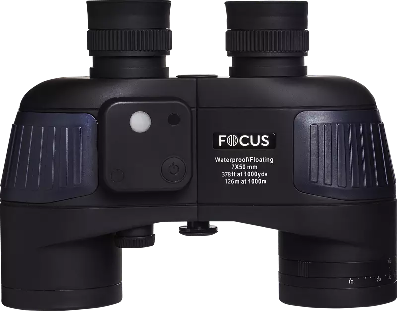 Focus Aquafloat 7x50 Waterproof Compass is a marine binocular designed specifically for boating and navigation. The binoculars are waterproof and feature a built-in compass and distance measuring scale, which can be illuminated when needed.