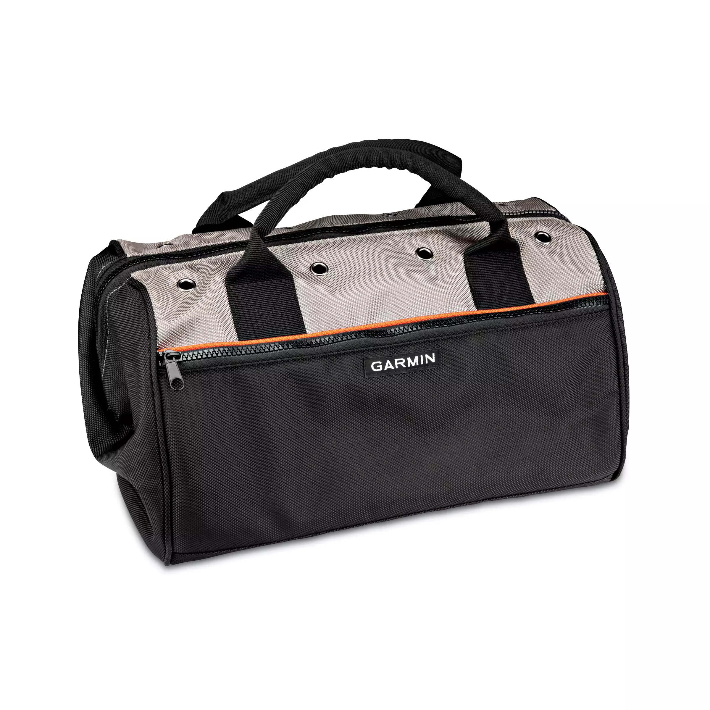 Garmin Field Bag keeps all your tracking and training devices organized, safe, and within reach. Made from durable black and gray polyester, this zippered bag features a bright orange accent for added visibility and style.