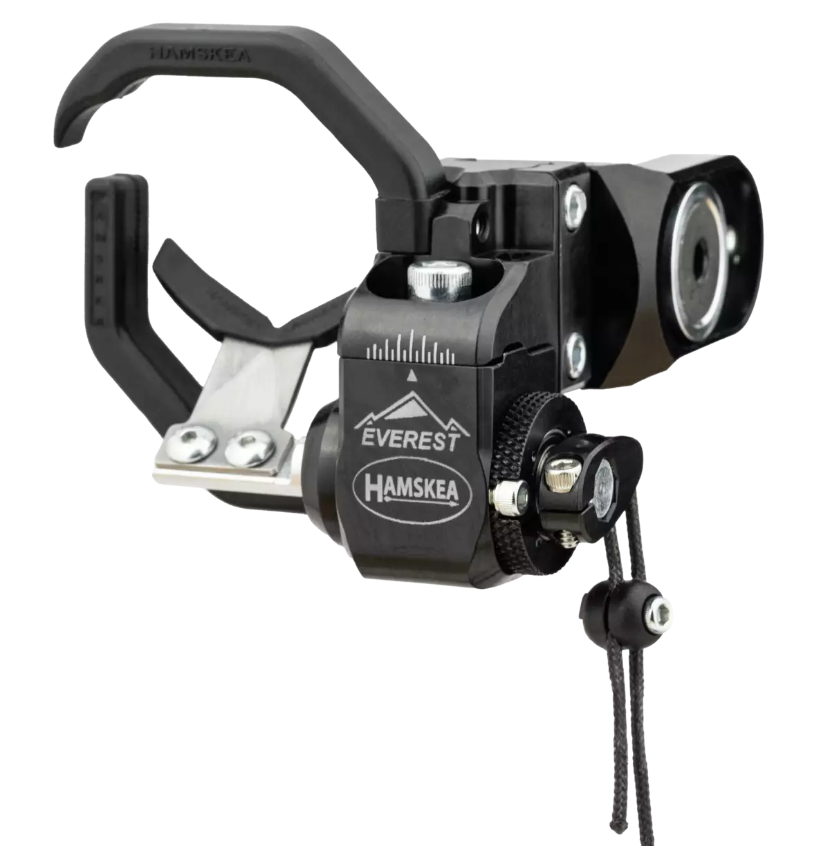 Hamskea Everest is adjustable both vertically and horizontally, and it has a built-in cord guide that provides consistent release. The sound dampening system reduces vibration and noise when shooting. The low-profile design improves aerodynamics and reduces frame contact. The structure is lightweight yet durable, with the product weighing approximately 140 grams. It is available for both right- and left-handed shooters.