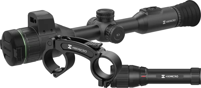 Paketin ytimessä on HIKMICRO Alpex A50EL 4K Tube Scope LRF, jossa on 3840 x 2160 pikselin CMOS-kuvakenno, valovoimainen 50 mm objektiivi säädettävällä aukolla (F1.2 - F2.5) ja 0,49 tuuman OLED-näyttö 1920 x 1080 tarkkuudella. Sisäänrakennettu laser-etäisyysmittari 1000 metriin asti ja ballistinen laskenta auttavat säätämään tähtäyspisteen luodin pudotuksen mukaan, mikä parantaa osumavarmuutta erilaisilla ampumaetäisyyksillä. Tähtäimessä on useita ristikko- ja värivaihtoehtoja, joten se voidaan säätää omaan ase- ja patruunayhdistelmään sopivaksi.