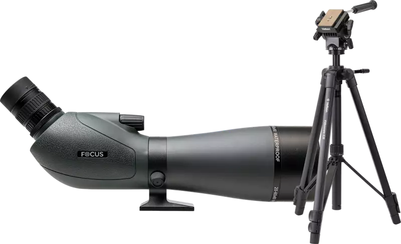Focus Viewmaster 20-60x80 with Velbon VM638 is a versatile spotting scope suitable for birdwatching, astronomy, and shooting ranges. It features high-quality optics and a large 80 mm objective lens, providing sharp and vibrant images.