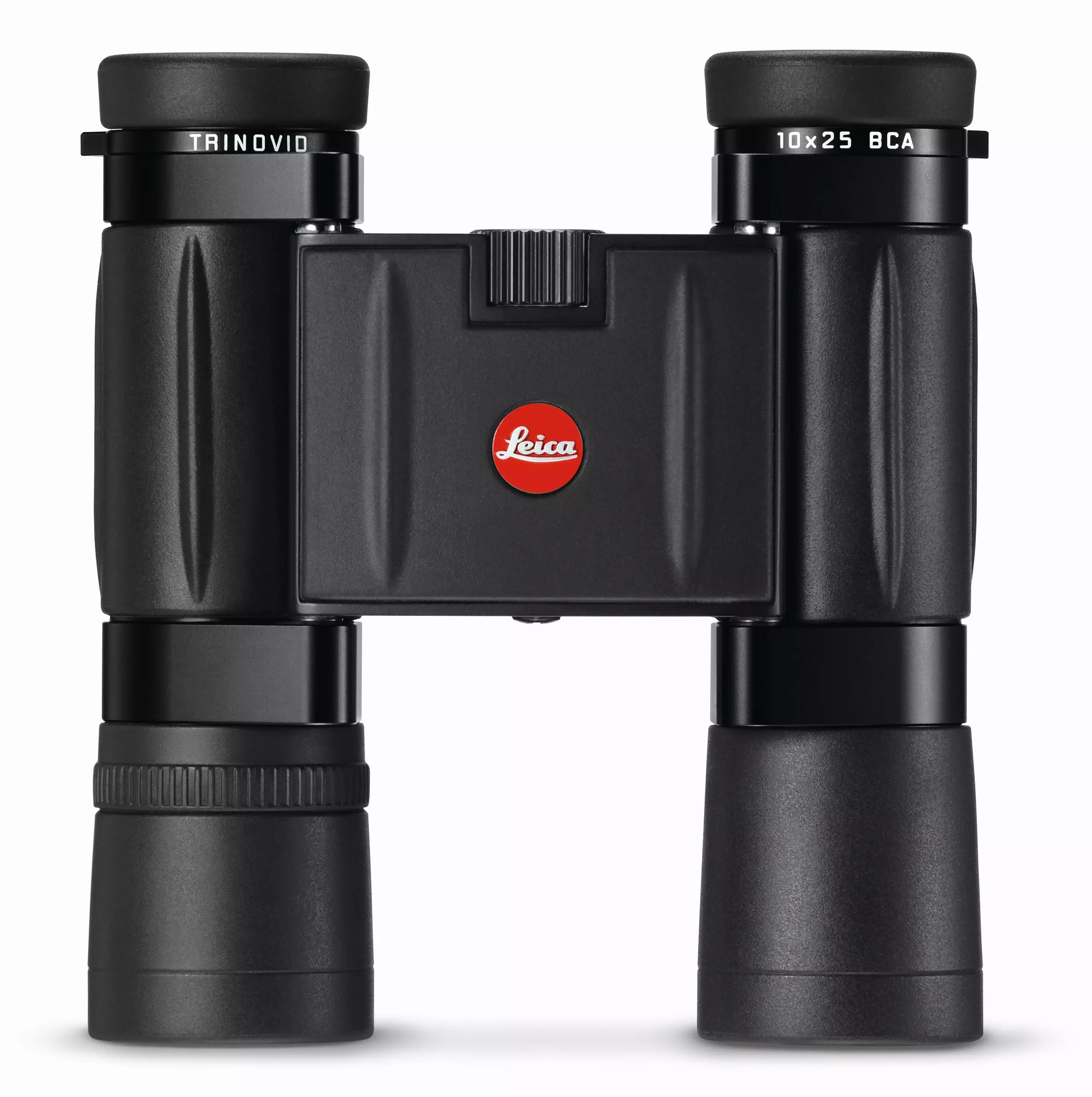 Leica Trinovid 10x25 BCA are compact binoculars that offer 10x magnification and a 25 mm objective lens diameter. The binoculars have a field of view of 90 meters at a distance of 1000 meters, and they are specially designed for eyeglass wearers, as they feature adjustable eyecups and a 14.6 mm eye relief. The closest focusing distance of the binoculars is approximately 5 meters (16.5 feet).