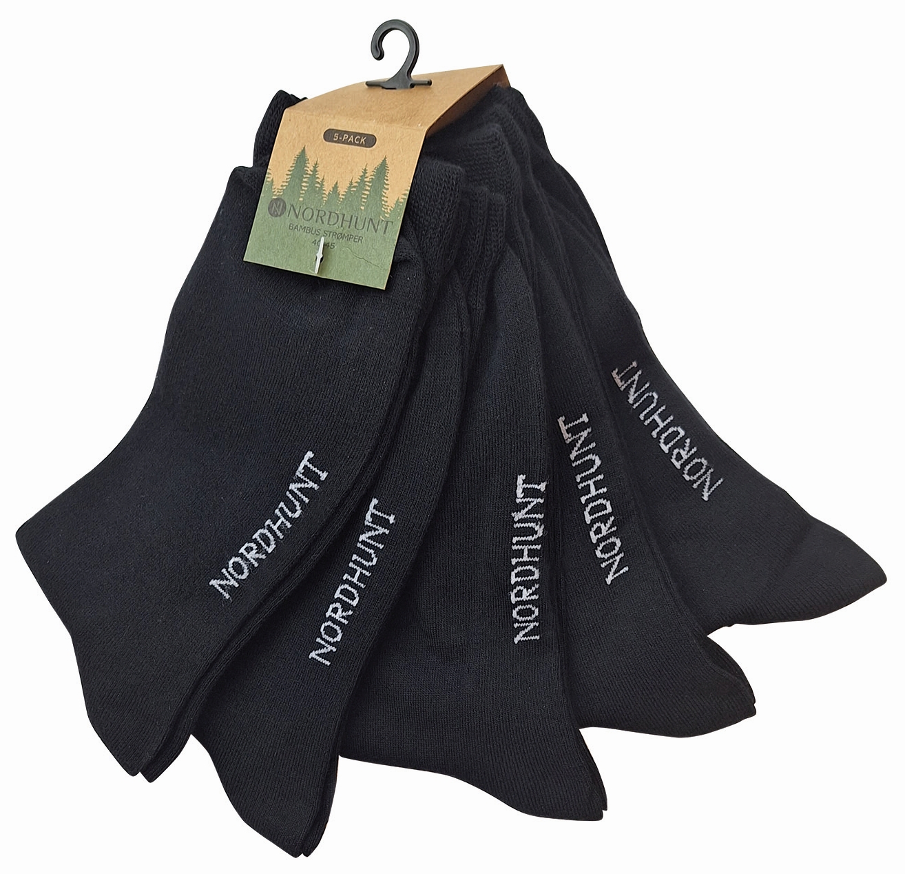 Nordhunt Bamboo 5-Pack Socks Black 40-45 – These socks offer comfort and quality for everyday use. Made from soft bamboo fiber, Nordhunt socks are both breathable and durable, perfect for everyday wear and light outdoor activities.
