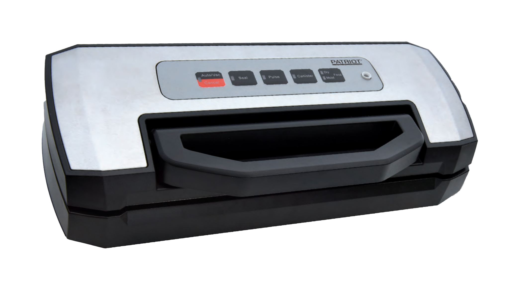 is easy to use and compact in size, as well as a quiet and efficient device for even the most demanding user. The device's high suction power (-0.8bar) and high-quality sealing ensure a successful result for almost all food items. From the LED-lit buttons on the device's lid, you can choose either fully automatic programs or alternatively use the device manually and adjust the suction duration to be just right, for example, for easily crushable food items (berries, fruits, etc.). The Patriot® vacuum machine is pleasantly quiet to use and is very easy to keep clean thanks to the removable and washable liquid tray.