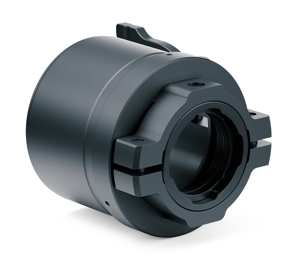 The thermal imaging accessory connector is attached to the adapter using a four-point bayonet. The bayonet connector is highly reliable and fast, making attachment and detachment easy. The attachment can be removed from the adapter and installed onto another without special tools, enabling quick and easy transformation of daytime optics into thermal imaging optics in the hunter's arsenal.