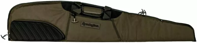 Remington First In Field Rifle Case Take your rifle to the range, hunting grounds, or blind with the Remington First In Field rifle case. The durable fabric, protective foam padding, and zippered accessory pockets provide excellent protection and storage. A rigid structured lid enhances the case's durability and safeguarding capabilities.