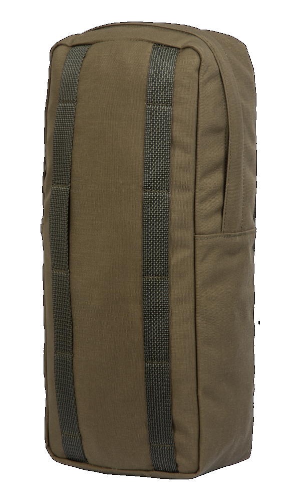 The rear features our standard PALS attachment webbing system with tuck tabs. The middlemost horizontal webbing rows were eliminated as they didn’t really do anything besides add weight. We aren’t a ultralight gear manufacturer, but even we don’t like unnecessary weight. The two vertical attachment straps leave a approx. 9 cm wide gap between them, this allows you to carry stuff such as axes, fishing poles etc. stuffed down behind the pouch. Optimal attachment requires a width of four channels and a height of seven (min. six) rows of PALS webbing. Your packs side compression straps will, when tightened down, eliminate any movement of the pouch and its contents. Of our own packs we recommend the 8L side pouch to be used only on the Jääkäri XL. Although not recommended you can attach it to smaller packs with an absolute minimum of five rows of PALS webbing on the sides (Jääkäri M and L for example), this is done by attaching the pouch one step higher and accepting that the bottom will be a bit floppy.