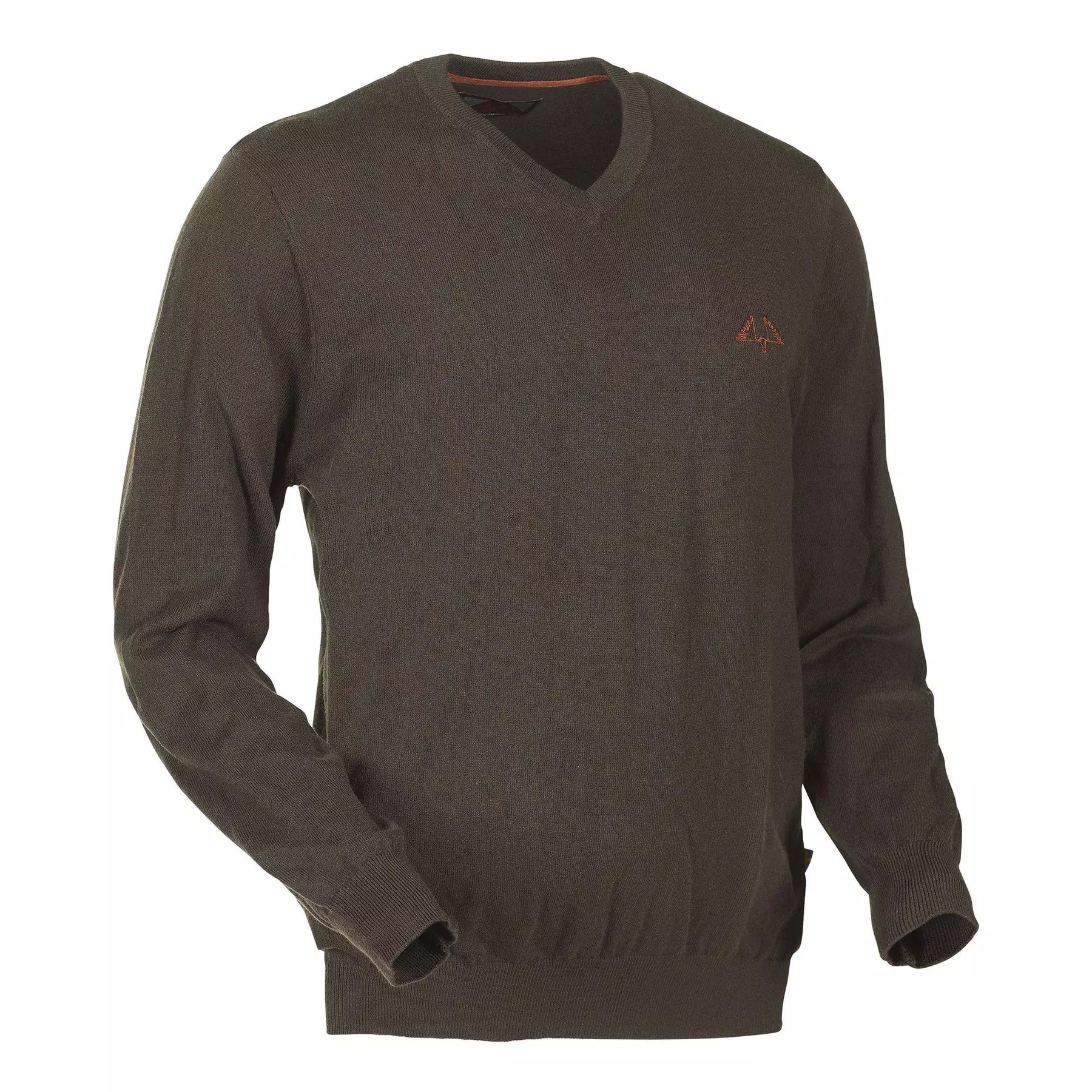 The sweater features a classic V-neckline, giving it a stylish and timeless look. The material composition, 95% cotton and 5% cashmere, ensures not only softness but also durability. The sweater is excellent for layering, as it works well as a mid-layer.