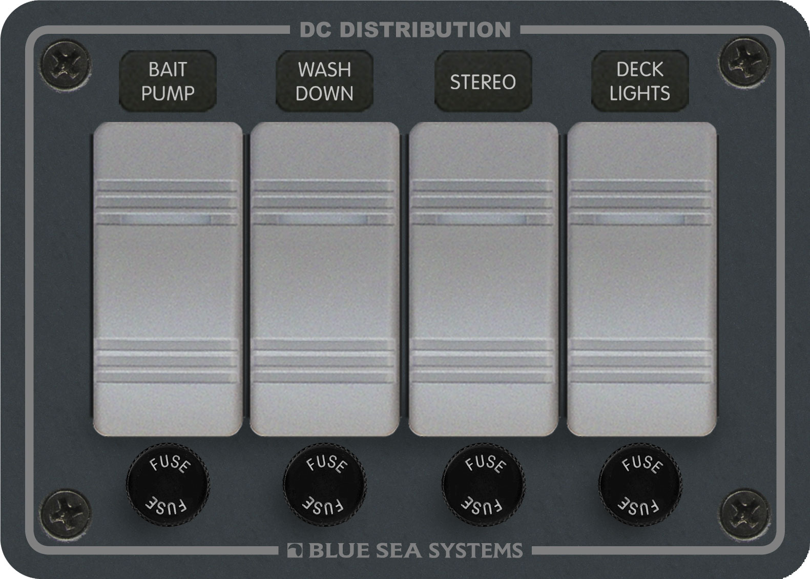 Blue Sea Systems Panel H2O 12VDC AGC 4pos Gray H Switch panel with four switches