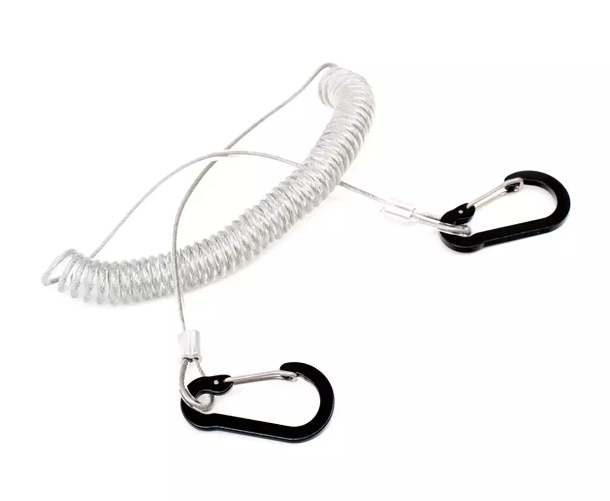 Konstruktionen är designad för krävande användning: stålkärnan med mjuk plastbeläggning tål drag och nötning, men känns ändå behaglig även i kyla. Avtagbara karbinhakar gör det enkelt att fästa remmen på ryggsäckar, västar eller D-ringar, och den spiralformade designen håller remmen kompakt när längden inte behövs. På så sätt hålls håven säker men redo för omedelbar användning.