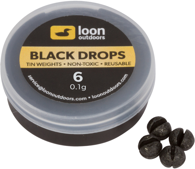 Loon Black Drops Refill Tub is an eco-friendly option for fly fishers who need to add weight to their leader. The product consists of lead-free shot made from tin. The black color of these shots makes them unobtrusive in the water, as they do not reflect light. The shots are reusable, which enhances their ecological value. This makes them an excellent choice for anglers who want to reduce their environmental impact.