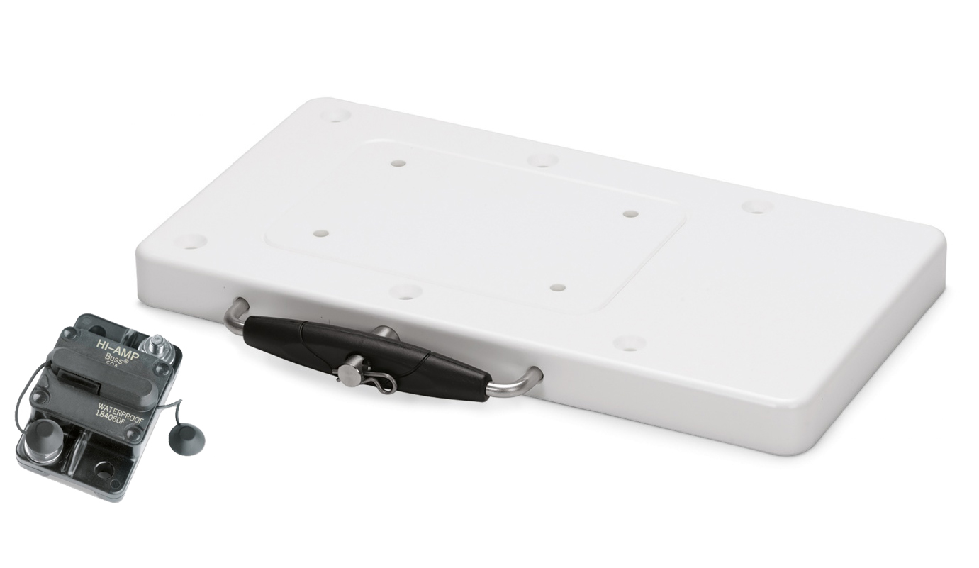 The accessory package also includes a 60amp automatic fuse, which also functions as a main switch for the bow motor. The 60amp automatic fuse withstands even large current spikes and does not trip by itself. If a load or current spike trips the fuse, it is easy to reset by pressing a button. The automatic fuse protects the electronics of your bow motor.