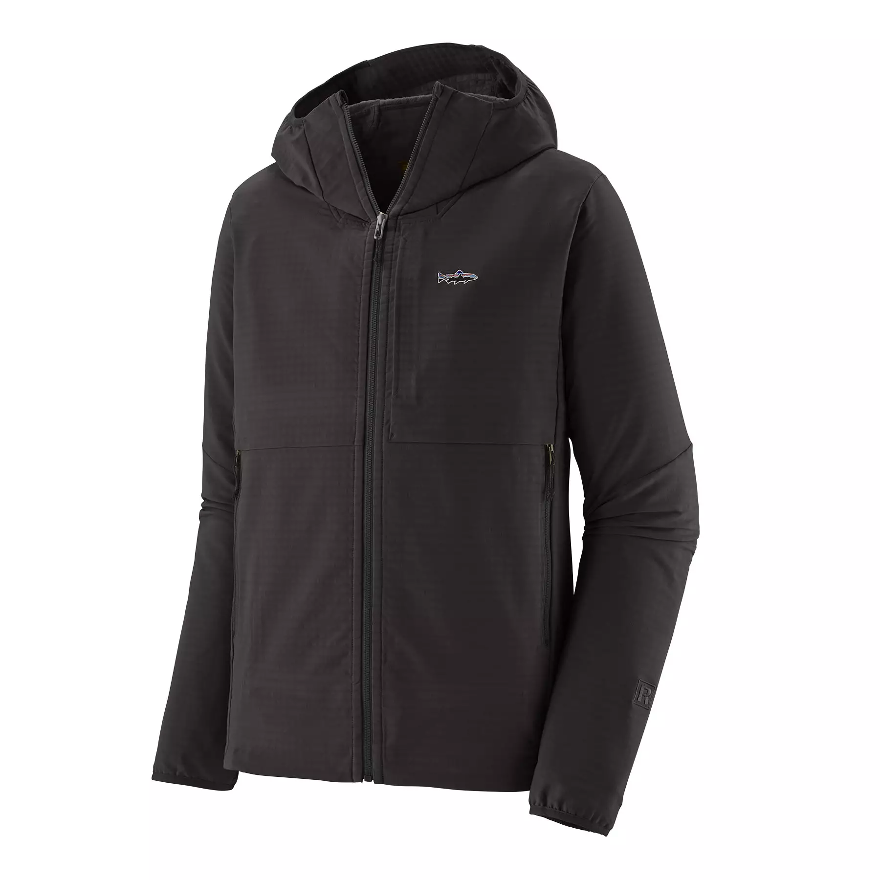 Patagonia M's R1 TechFace Fitz Roy Trout Hoody Black – Tämä monipuolinen huppari on suunniteltu viileän sään seikkailuihin ja veden äärellä tapahtuvaan toimintaan. Se yhdistää lämpimän, joustavan ja hengittävän materiaalin kulutuskestävyyteen ja säänkestävyyteen.