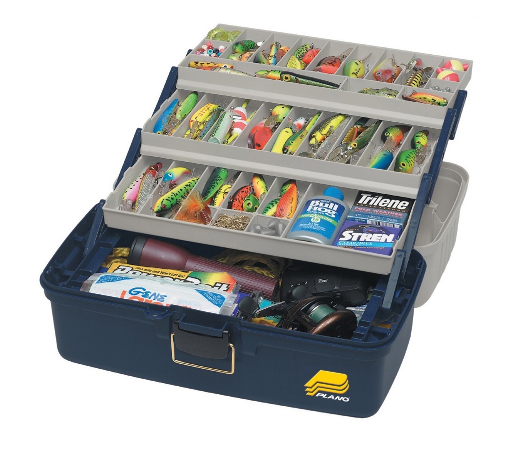 Plano Three-Tray Tackle Box XL - when you're organized, your day at the lake is just a little more enjoyable. You'll have plenty of room for all your fishing lures and accessories with this roomy, three-tray tackle box. In addition to fixed compartments in the trays, this tackle box offers plentiful bulk storage in the bottom and a brass-bailed latch so you know it's closed securely.
