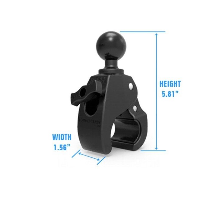 RAM Tough-Claw Medium Clamp Ball Base for medium-sized bar holder for 1" - 1.875" pipe (2.54 - 4.76 cm), (1.5" ball). Max pipe diameter 4.76cm. Particularly suitable for attaching cup and phone holders. Also a great option for attaching a "jig plate".