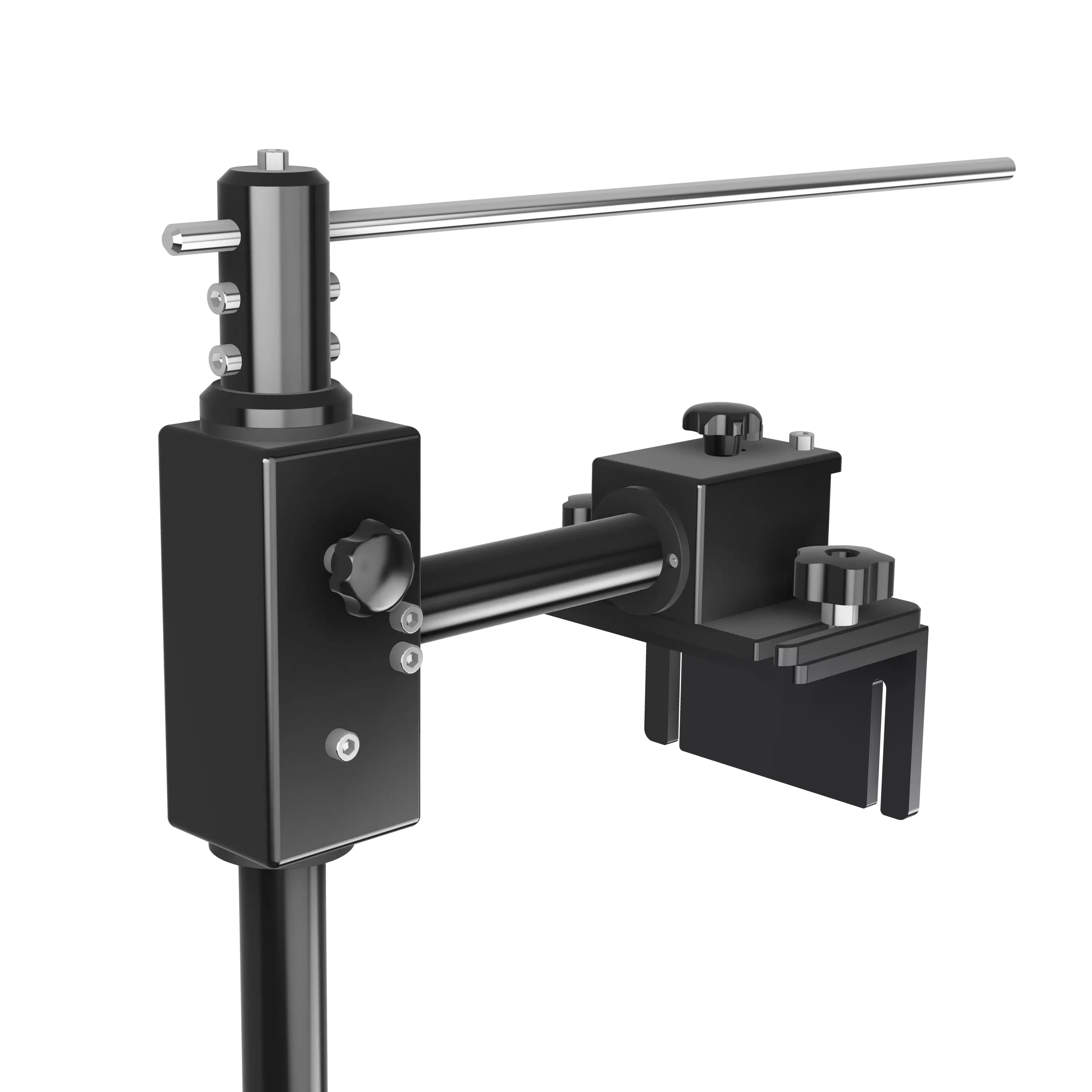 The Ruoto Panoptix Livescope 2 transducer mount easily rotates horizontally during transportation. Simply loosen the thumb screw on the stand, push the mount inward, and turn it into transport position. Thanks to the square locking piece, the mount always rotates in 90-degree increments, ensuring your transducer is always in the correct position. The handle at the top of the mount allows you to rotate the Livescope transducer to the desired direction. It is recommended to install the transducer parallel to the handle or in the completely opposite direction, so you can always see from the handle where the transducer beam is pointing. The mount also functions as a regular "vertical fishing mount," as the top handle can be locked in four different positions with a spring-loaded locking pin.