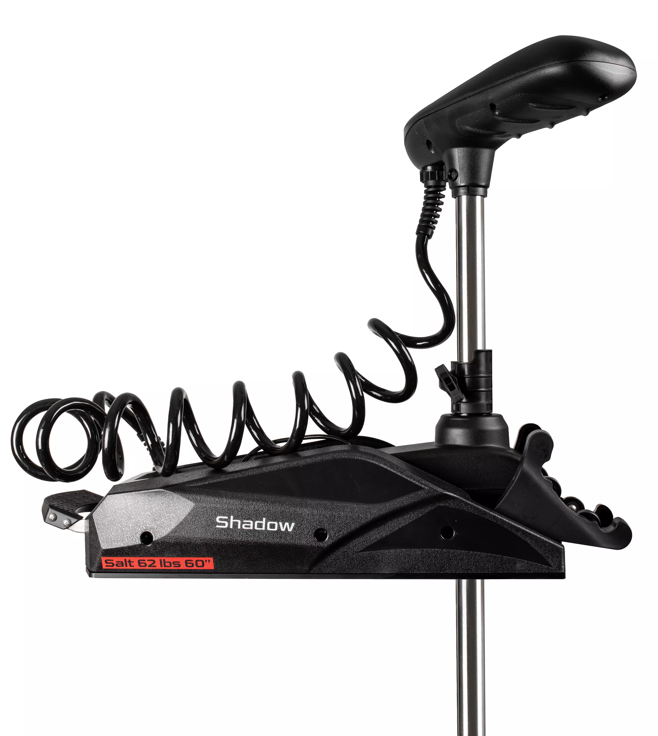 Saxa Shadow Pro 62 lbs 60'' is a saltwater-resistant GPS bow-electric motor, colloquially known as a "sky anchor", equipped with a long shaft. This sleek and stylish black bow motor represents the latest design and technology from the factory.