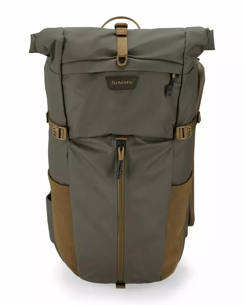 Simms Headwaters Backpack Hickory designed for demanding backcountry trips, this backpack combines durable 630-denier construction, a magnetic roll closure, ample storage space for fishing gear, and an ergonomic fit that adapts to long journeys and heavy loads.