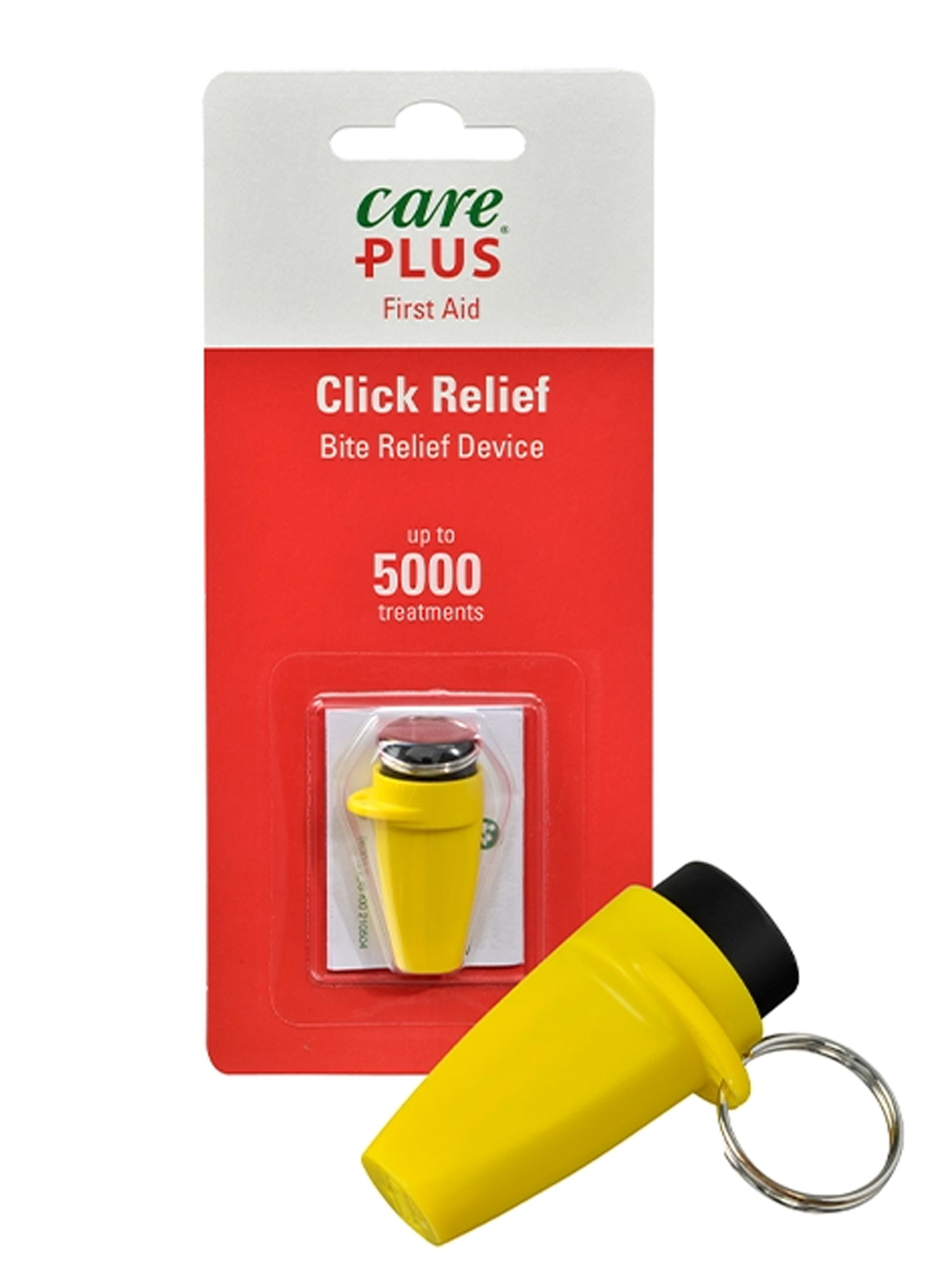 Care Plus Click-Relief treats swelling, redness, irritation and itching after an insect sting or jellyfish bite. This handy device can reduce itching and swelling after a mosquito bite or a wasp or bee sting. Works within several minutes.