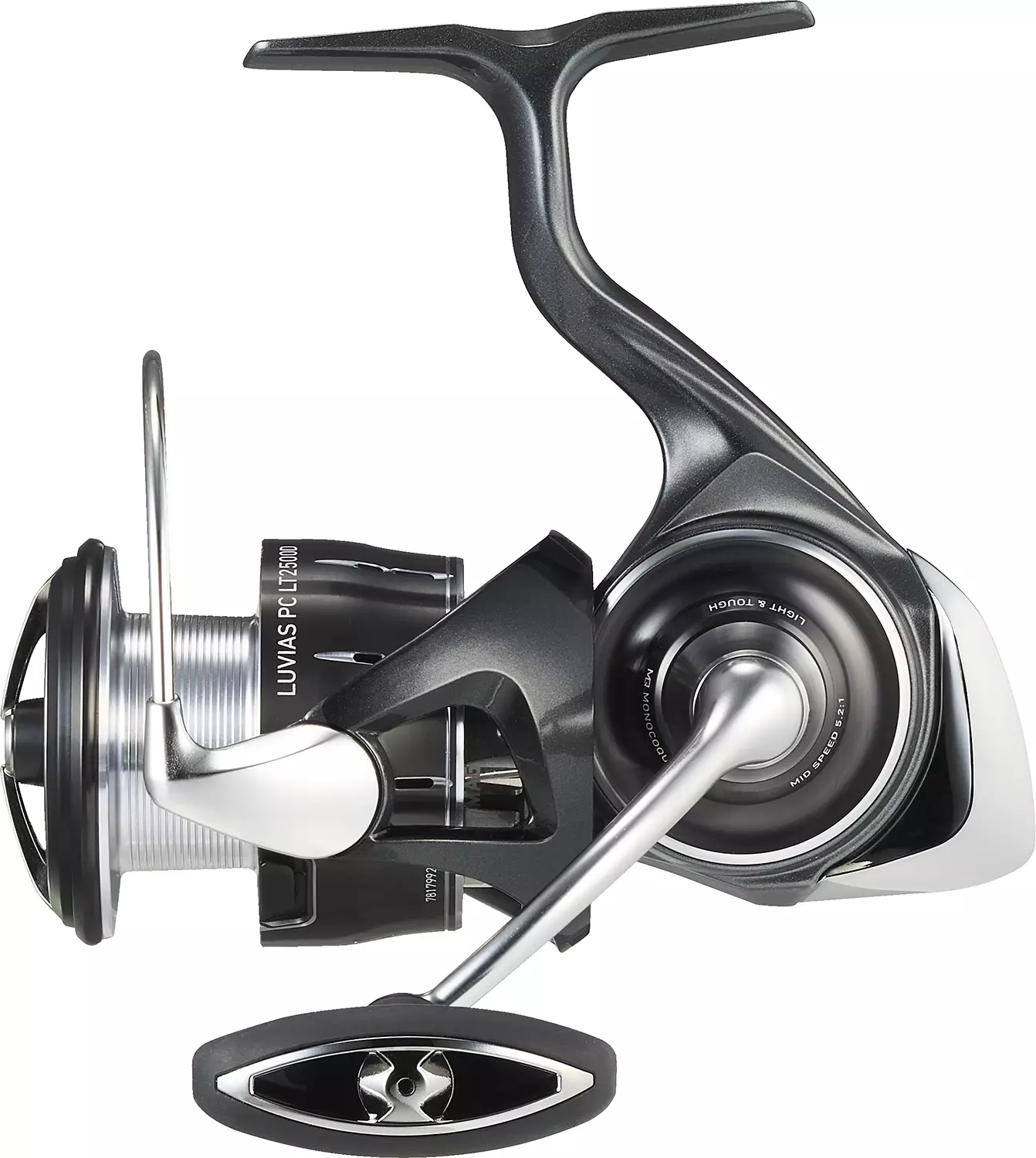 Additionally, the Luvias 24 LT features a specially treated extra-large MQ gear, which improves the reel's durability and smoothness. The Monocoque body is made of Zaion material, which is extremely lightweight and torsion-free, ensuring perfect positioning of the internal components and quality. The handle shaft features a newly designed rubber seal that significantly reduces the ingress of water or dirt into the reel's interior.