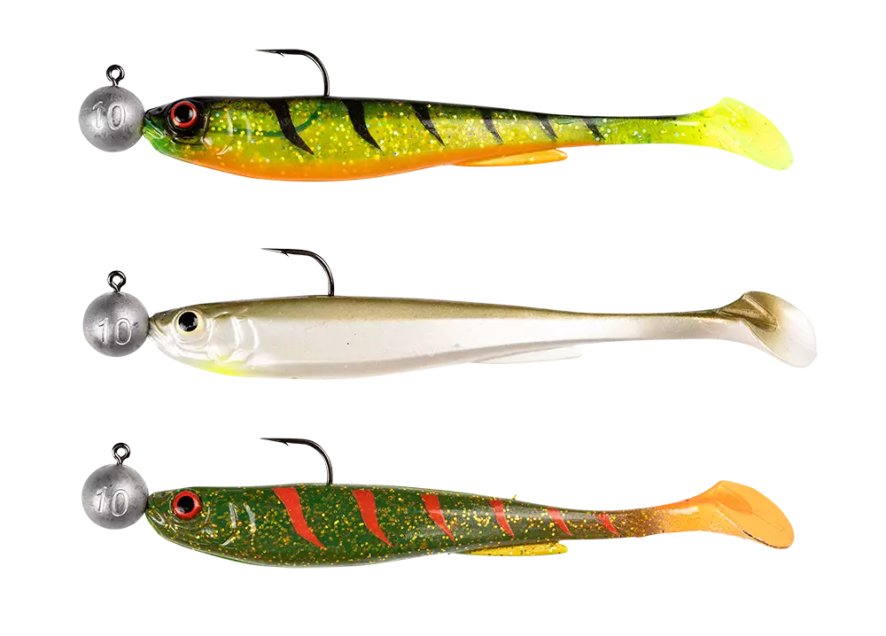 Daiwa Prorex Slim Shady Perch/Zander Set is a ready-to-use jig set that includes three jig heads. This set is specifically designed for perch and zander fishing. The jigs are 10.5 cm long and equipped with 10g #3/0 jig heads.