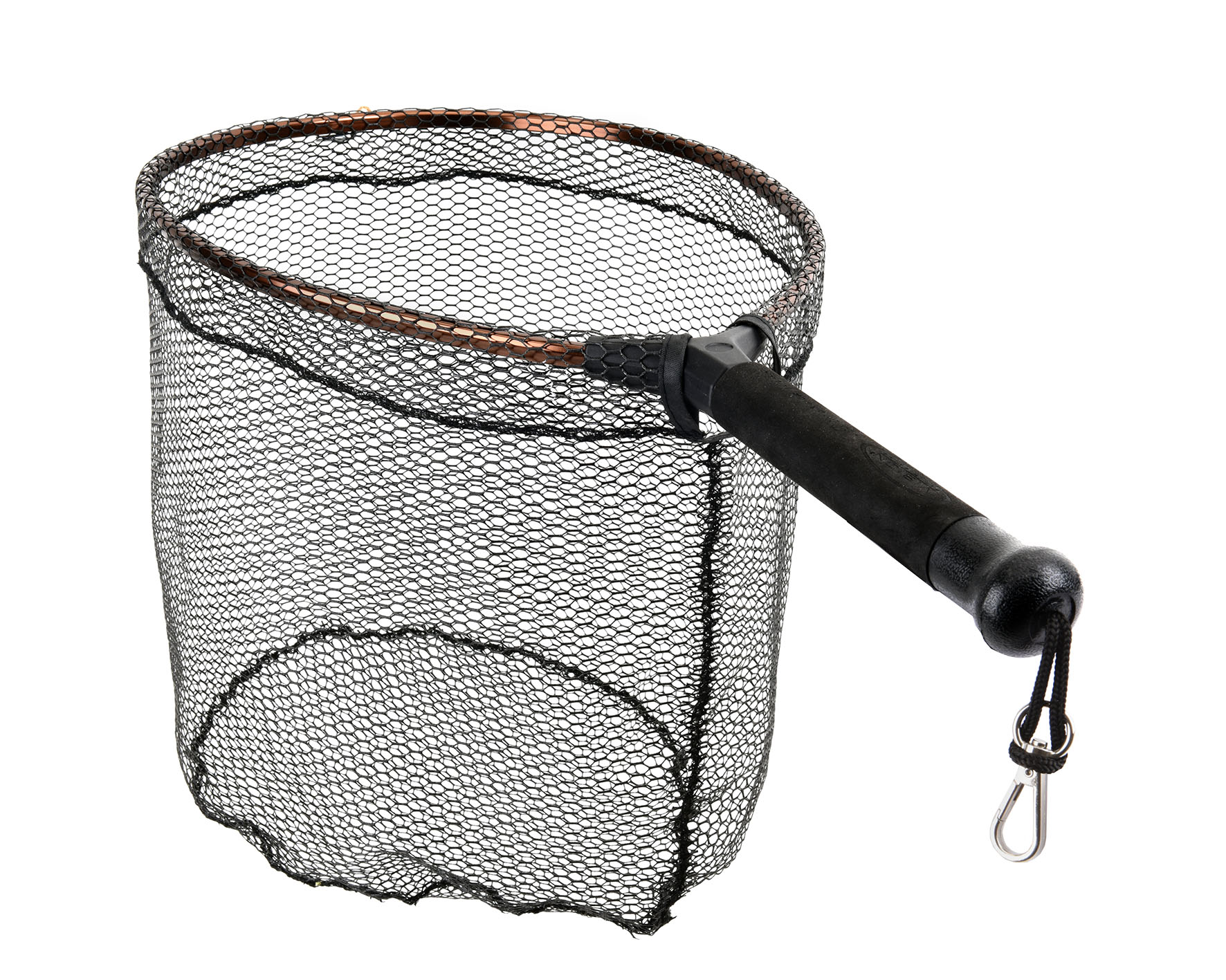 Vision Rivermaniac Net is made with a lightweight aluminum frame, short 18cm handle and 35cm deep rubber net. Perfect size for trout and grayling fishing. The net has a comfortable green EVA handle.