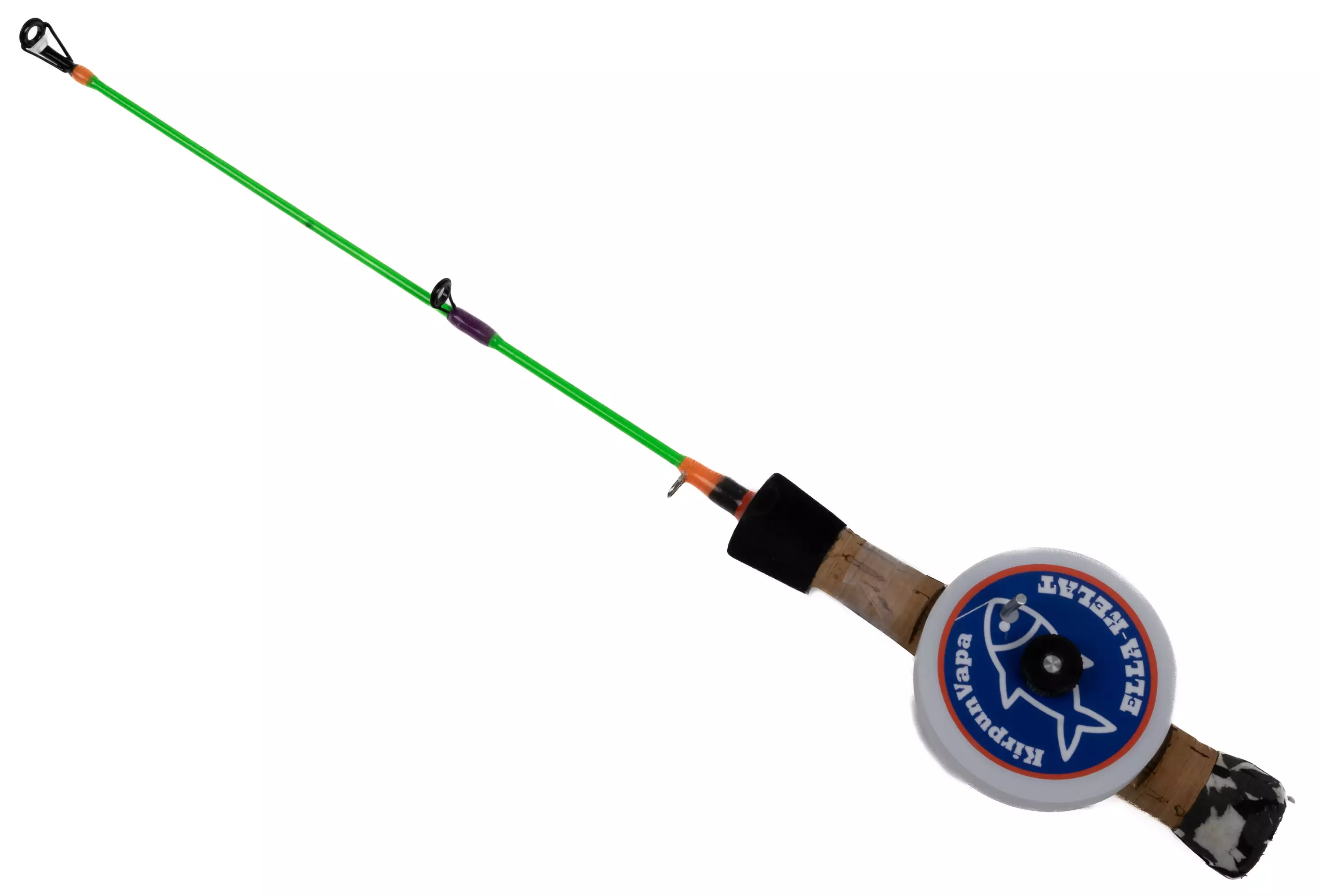The fiberglass blank of the Kirpun Kämmenvapa rod is the full length of the rod. The reel is attached to the rod with a machined aluminum bolt through which the rod blank passes. The handle of the rod is cork, with foam rubber ends. The cork is reinforced with a carbon fiber tube that runs through the cork handle, strengthening the entire rod.