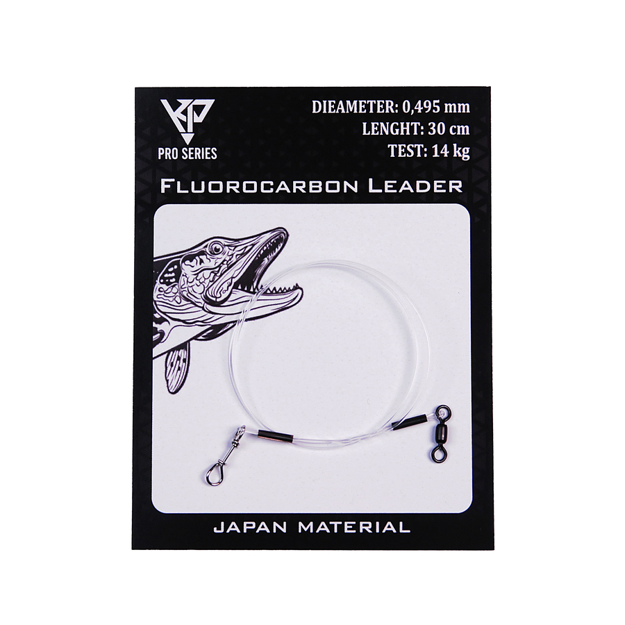 KP Fluorocarbon leader is a ready-made leader made from high-quality materials, designed for casting fishing. This leader is suitable for both basic casting anglers and pike anglers. The perch model leader is 0.49 mm thick and 30 cm long, and it is made of 100% fluorocarbon. The leader features a handy quick lock that makes it easy to change lures. The package contains one leader.