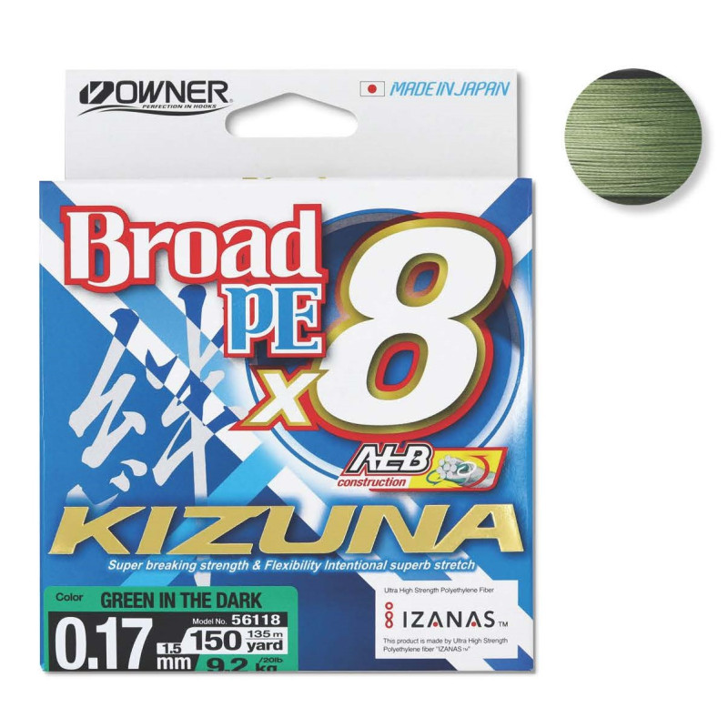 Owner Kizuna Green braided line is a revolutionary, Japan-made 8-strand PE braided line. If you demand more from your fishing line, Owner Kizuna is your choice. Excellent tensile strength and true line diameters. An outstanding line for both spinning and baitcasting reels.