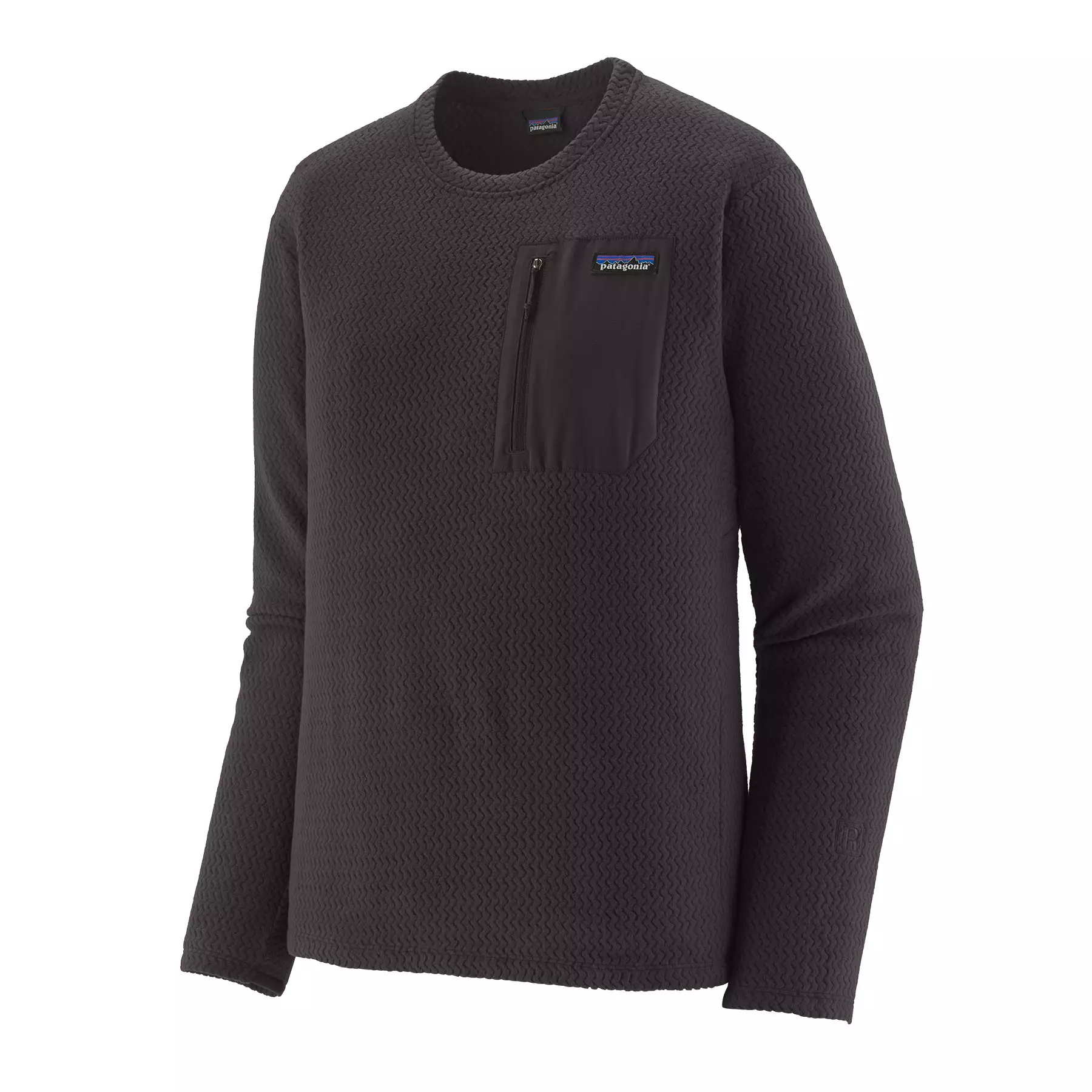 Patagonia Mens R1 Air Crew Black The Patagonia R1 Air Crew is a lightweight and breathable technical fleece shirt made from 100% recycled polyester. It is designed for cool conditions and active use.