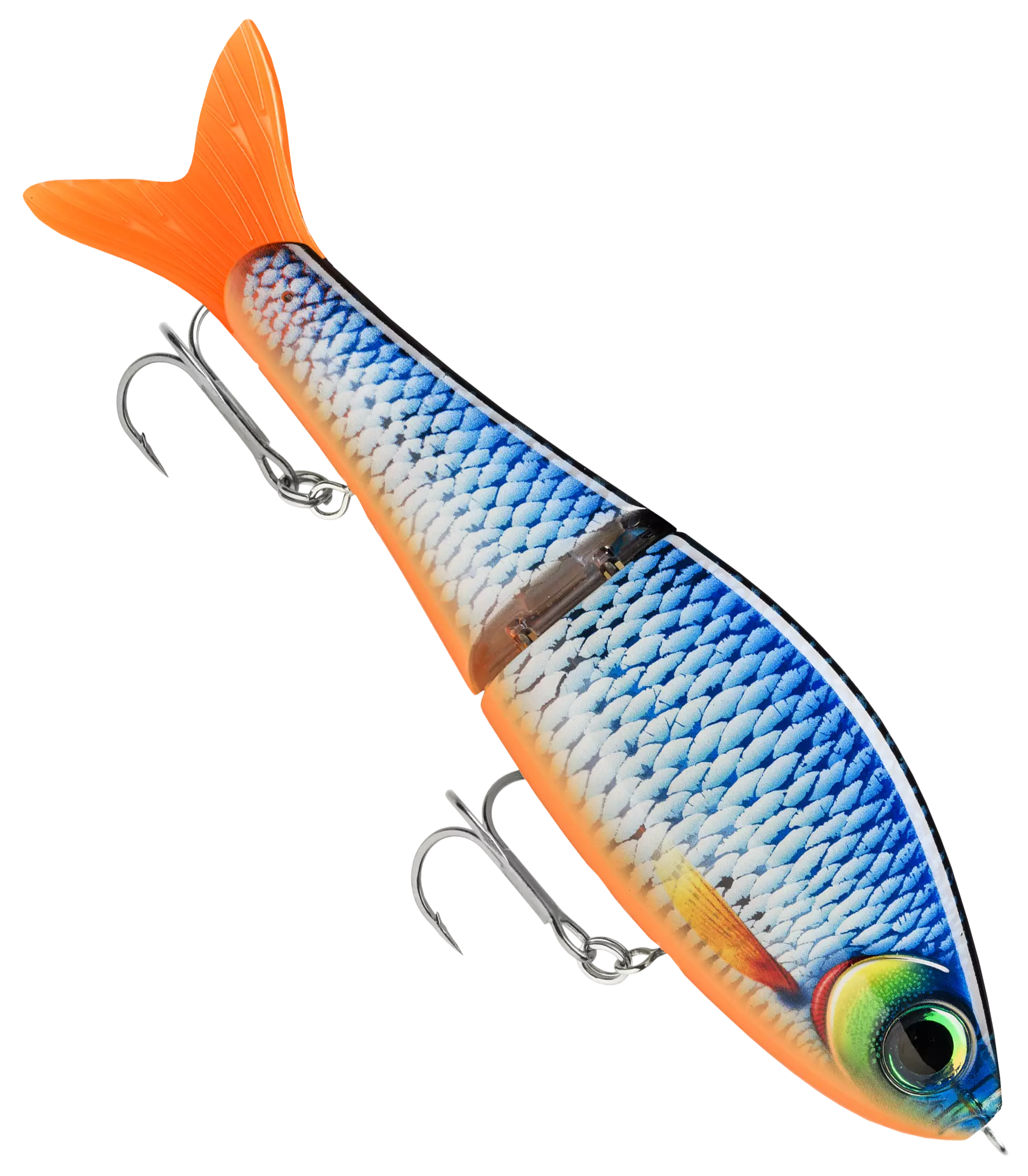 The Super Shadow Rap Glide swims in a fish-catching S-pattern, but that’s just the start. When you need to adjust the swimming depth, the revolutionary Screw Diver System (SDS) allows you to modify the lure’s weight with changeable tungsten weights. Simply screw it on and off! The master of adaptation, this jointed swimbait comes with a spare tail, allowing you to choose between life-like and aggressive colors. On steady retrieves, the Super Shadow Rap Glide gives off a slow S-pattern swimming action – with twitching, the lure swims with short turns. And when the fish is on, the swiveled hooks increase your chance of landing your catch. Extra Screw Diver System weights sold separately.