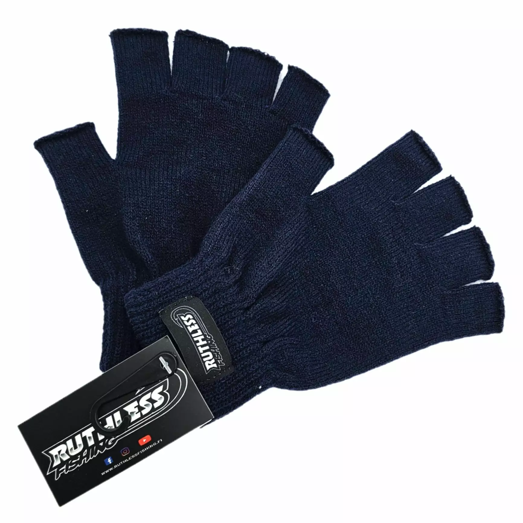 Ruthless Fishing Fingerless Gloves are the perfect choice for fishing and outdoor activities when you want to keep your hands warm while still being able to handle lures and tie knots on the ice. The gloves are made from a durable and warm acrylic/wool blend. The material offers excellent comfort in all weather conditions. One size fits all thanks to its stretchy material. Color: Navy / dark blue.