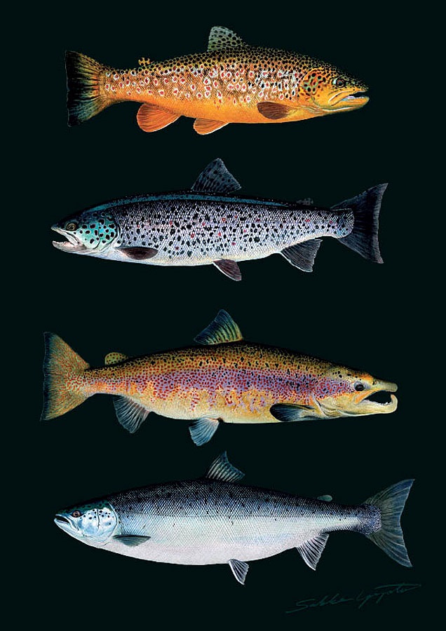 Sakke Yrjölä Salmon vs Trout -card/A4 fish chart